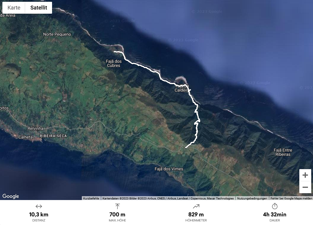 Den Tag beschliessen wir mit einem leckeren Abendessen auf der Terrasse des Restaurants Açor am Kirchplatz von Velas. Genau an dieser Stelle hatten wir vor fünf Jahren unseren Aufenthalt in São Jorge begonnen, wo eine grosse religiöse Zeremonie zu Ehren des Heiligen Geistes, gleichzeitig Volksfest stattfand, an dem mindestens die Hälfte der Inselbevölkerung teilzunehmen schien.