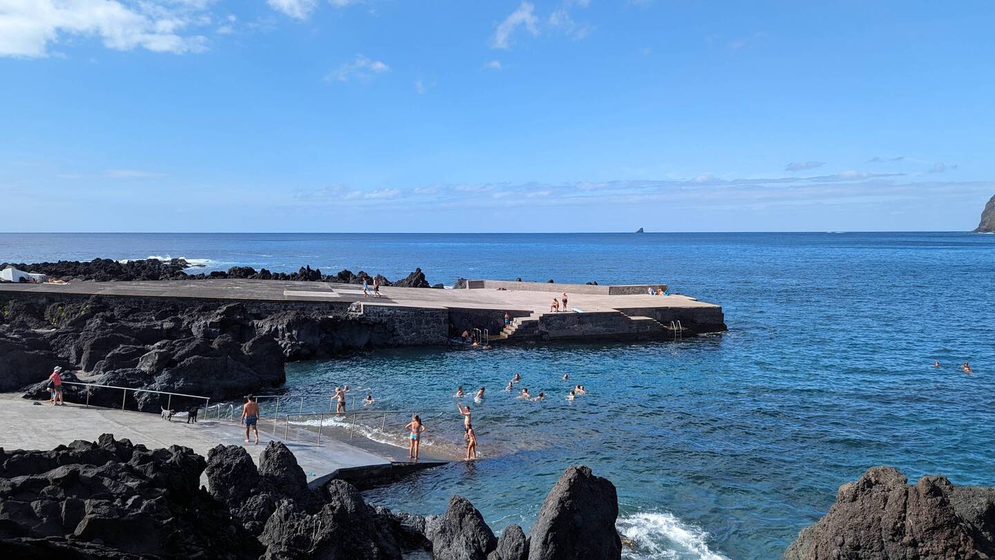 Die Fahrt dauert keine 15 Minuten aber unterwegs gibt es bereits einen schönen Miradouro zu würdigen und wir steigen kurz aus um den Blick von oben runter auf die Westküste an der wir wohnen zu geniessen.