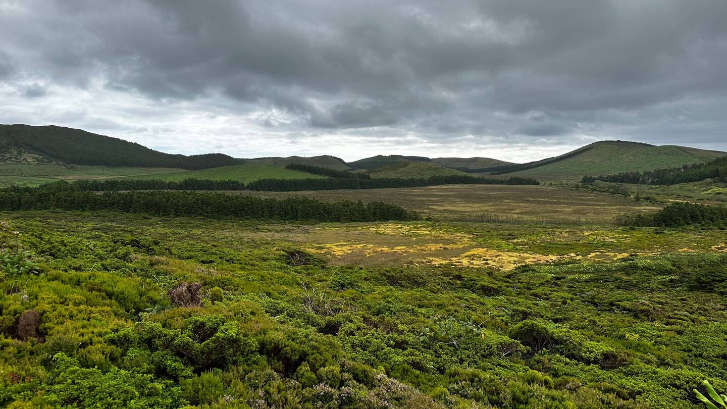 Der Wetterbericht für heute ist Sonnenschein pur, nun beim Aufstehen ist es aber grau und es regnet teilweise sogar leicht. Da Flores die Insel der Azoren mit am meisten Niederschlag ist, wundert uns dies nun nicht wirklich. Wir beachten das Wetter nicht weiter und fahren nach dem Frühstück zum Reserva Florestal Natural do Morro Alto e Pico da Se. Der Hochebene der Insel, sie besteht hauptsächlich aus Mooren und Kraterseen.