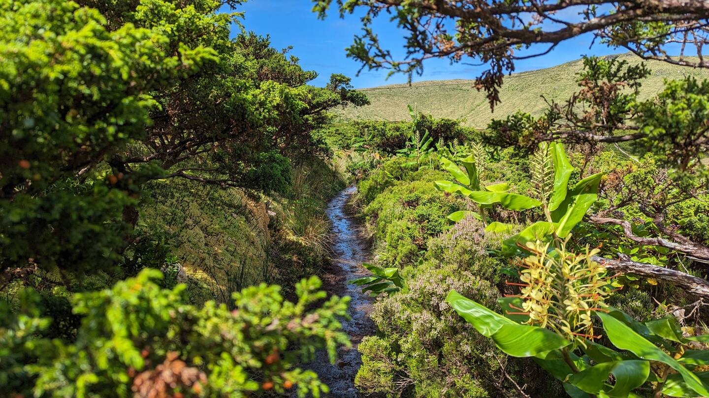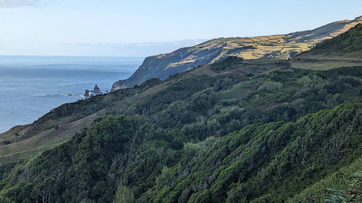 Neue Etappe, neue Insel, teilweise neues Klima und neue Unterkunft. Während uns unsere letzten beiden Unterkünfte auf São Jorge und Terceira eine "ozeanische" Dimension boten, scheint uns diese die Geborgenheit eines rundum von der Natur geschützten Ortes geben zu wollen, auch das hat seinen Reiz, als Abwechslung.