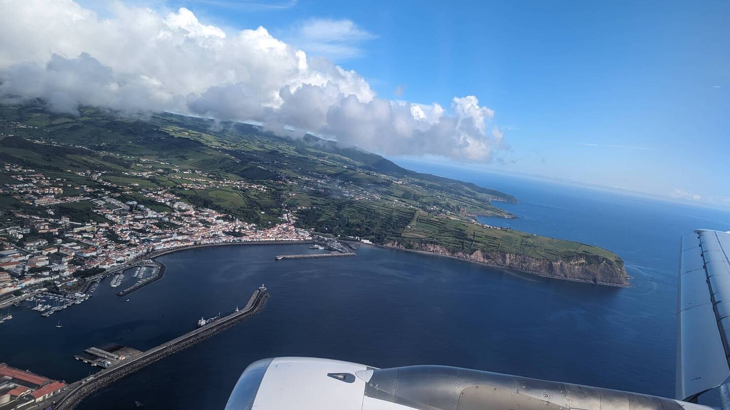 Nach einem wiederum ruhigen Flug landen wir kurz vor 11 Uhr Ortszeit (13 Uhr Schweizer Zeit) auf dem kleinen Flughafen von Horta. Kaum angekommen, spüren wir, dass hier ein anderer Rhythmus herrscht. Es ist geschäftig, aber nicht hektisch, die Menschen haben Zeit hier auf den Inseln. Neben der fantastischen Landschaft ein weiterer Grund, warum wir wiederkommen wollten.