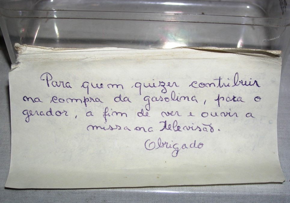 Also, die besonders Eingeweihten wissen natürlich, dass es sich hier um die Kirche der Fajã da Caldeira do Santo Cristo auf der Nordseite von São Jorge handelt. Auf einem Zettelchen neben dem Fernseher wird um eine kleine Spende gebeten, um Benzin für den Generator kaufen zu können, damit die Gläubigen am Sonntag die Übertragung der Messe im TV sehen können. Der Priester kommt nur zu besonderen Gelegenheiten in die fajã.