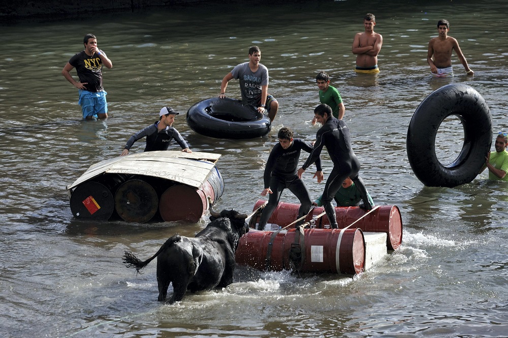 Die Stiere werden nicht mißhandelt, nicht verletzt und kommen danach wieder auf ihre Weide. Die Hörner sind gepolstert gegen Verletzungen. Junge Männer zeigen was sie für Kerle sind