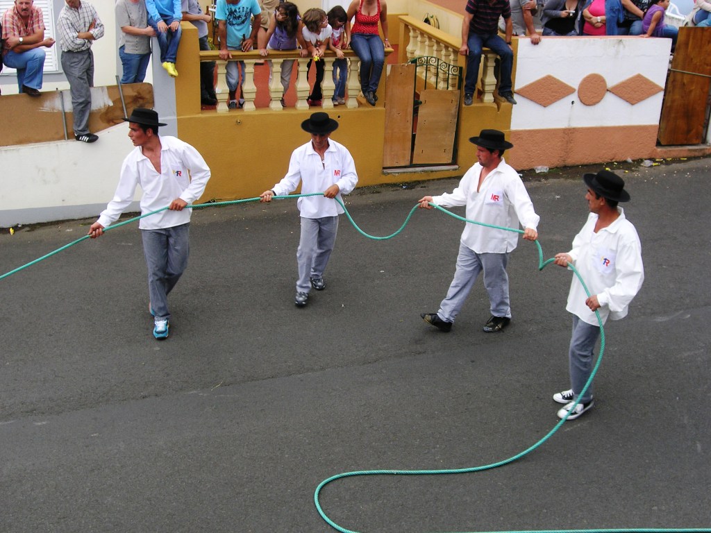 Die touradas à corda haben meines Wissens nichts mit kirchlichen Festen zu tun, sondern werden organisiert von Dorfgemeinschaften oder manchmal in den Städten von einzelnen Straßenzügen. Inwieweit da die jeweilige Gemeinde/Stadtverwaltung etc involviert ist, weiß ich nicht. Daß die Veranstaltungen zT an kirchlichen Feiertagen stattfinden, liegt in der Natur der Sache, da man ja den freien Tag ausnutzen möchte. Auf Terceira finden den Sommer über dutzende von touradas statt, am Wochenende auch gerne einmal mehrere Veranstaltungen zur gleichen Zeit in verschiedenen Ortschaften. Man hat es nie sehr weit um sich so etwas anzuschauen.