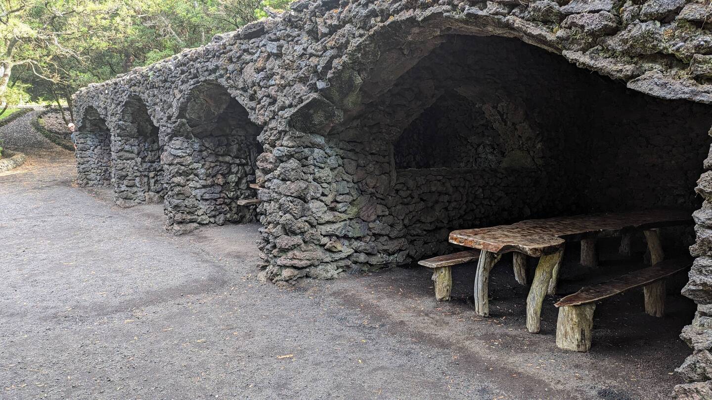 Hier finden wir ein 96 Hektar großes Erholungsgebiet auf einer Höhe von etwa 100 Metern. Es handelt sich um ein sehr bewaldetes Gebiet, in dem der Reichtum und die Vielfalt der endemischen makaronesischen Pflanzen (Kanarische Inseln, Azoren, Madeira, Kapverden), die typisch für die Lorbeerwälder sind, und dereren Kiefern hervorzuheben sind. Wir machen einen kleinen Spaziergang auf den schmalen Pfaden inmitten dieser üppigen Vegetation und kommen an zahlreichen Picknickplätzen vorbei.