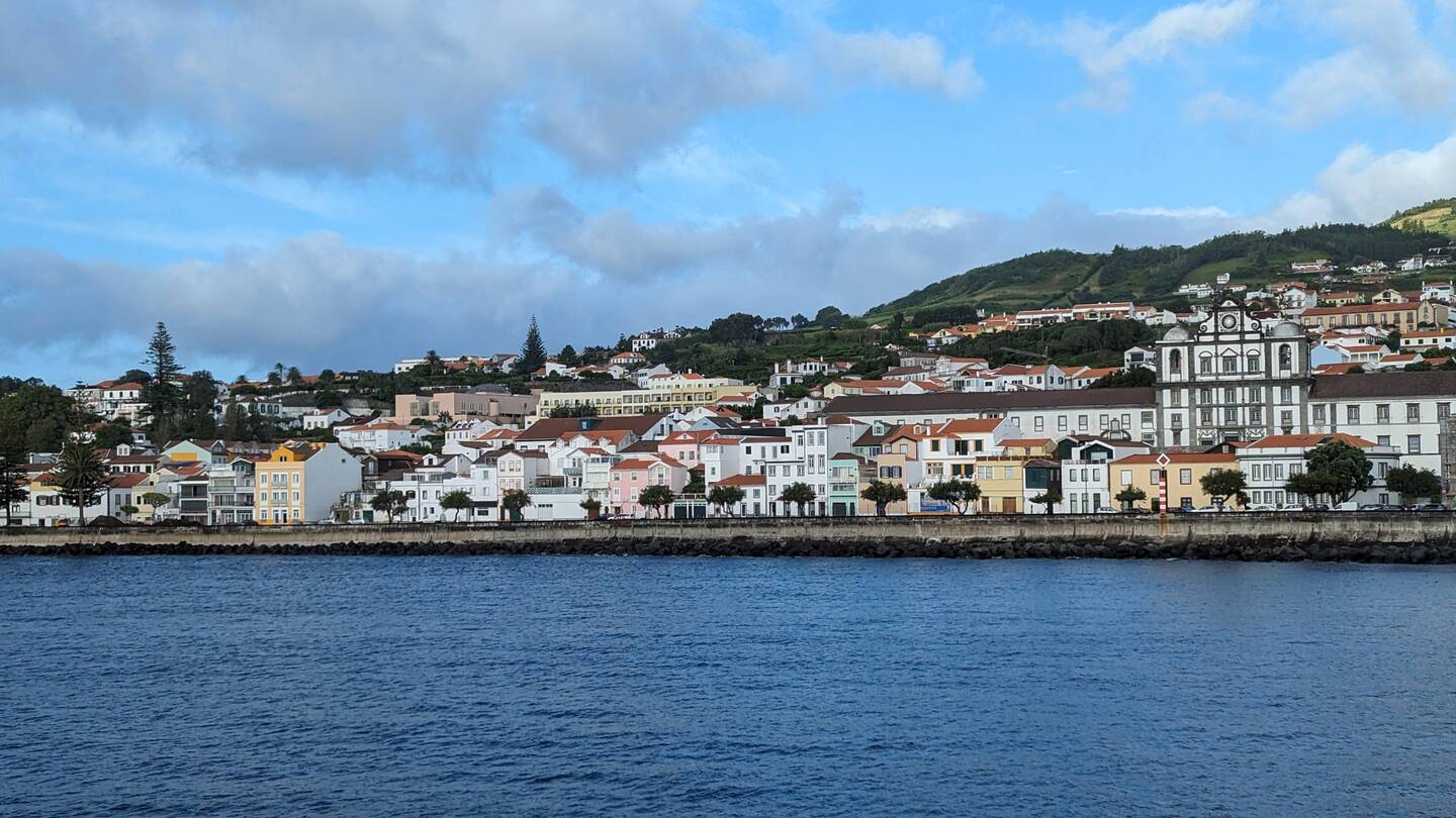Wir räumen das Haus, fahren mit dem Auto zur Fähre und geben es dort ab. Es ist nicht erlaubt, mit unserem Mietwagen auf eine andere Insel überzusetzen. Wir müssen also auf São Jorge ein anderes Auto mieten. Das Gepäck können wir am Fährterminal abgeben und in Velas auf São Jorge wieder abholen. Sehr praktisch, besonders wenn man schwere Koffer hat!
