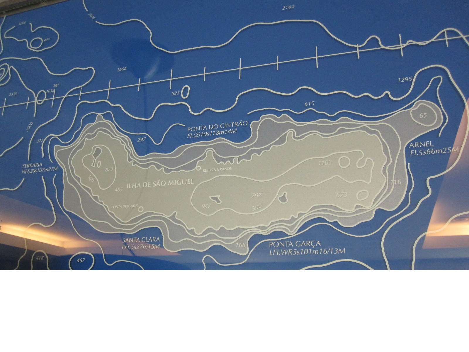 Vor etwa zehn Jahren entstand dieses Wandbild, das die Insel São Miguel zeigt. (Dabei ist die Graufärbung der die Insel umgebenden Meeresflächen etwas irritierend.)