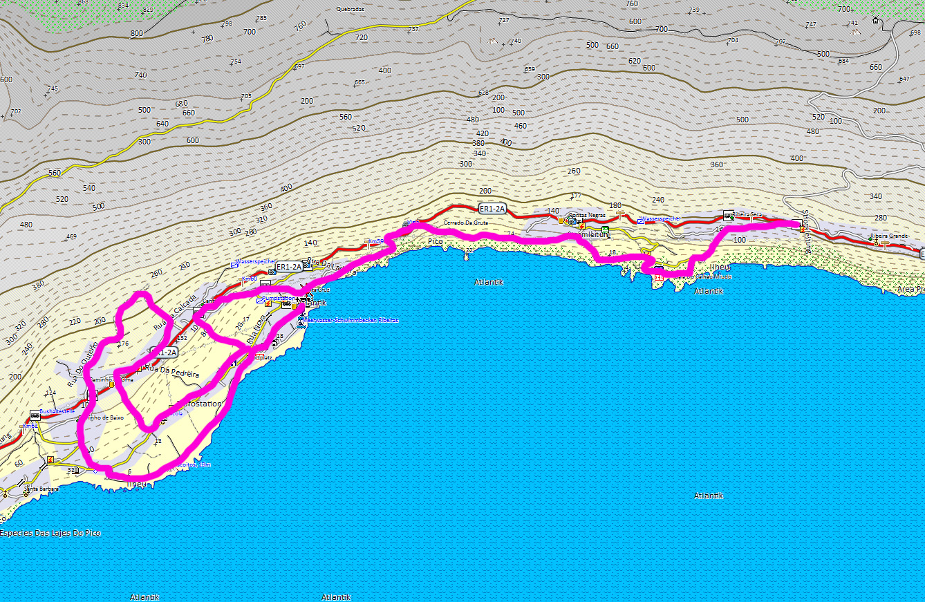 und dann gibt es eine schon teilmarkierte neue tour von lajes hinauf zum aussichtsberg und wieder hinab. sie wird vermutlich erst im nächsten jahr kommen.