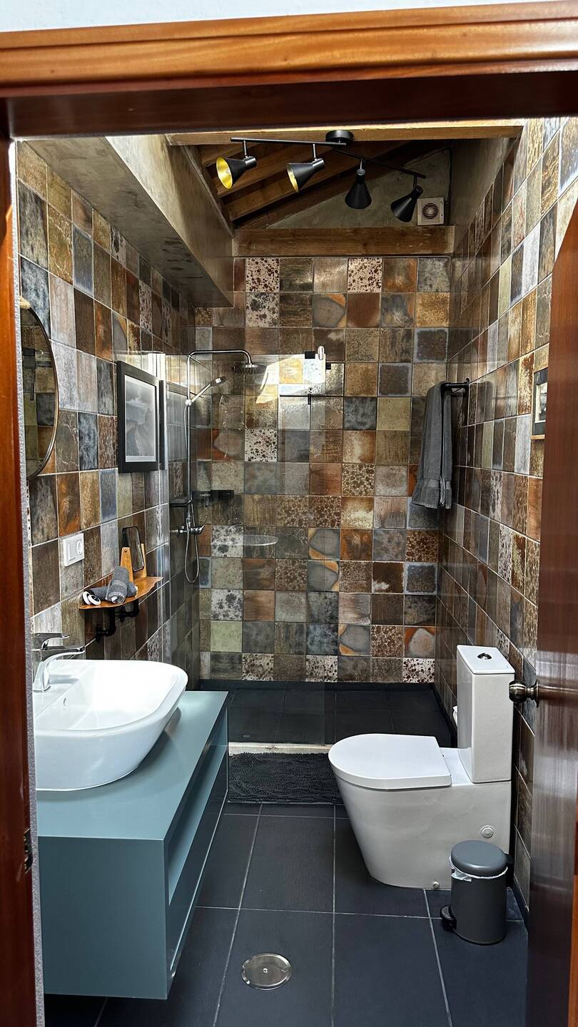 Das Restaurant scheint bei unserer Ankunft geschlossen zu sein. Ein Besen, der quer vor der offenen Tür steht, versperrt den Eingang. Als wir uns auf den Rückweg machen, erscheint ein lächelnder, barfüssiger Mann in den Sechzigern, der uns auf Englisch fragt, wie er uns helfen könne. Nach einem kurzen Wortwechsel erkennt Markus den deutschen Akzent unseres Gesprächspartners, der bestätigt, dass er Deutsch spricht. Es ist der Restaurantbesitzer. Er bietet uns entweder ein 4-Gänge-Überraschungsmenü, einen Salat oder das Hauptgericht an. Wir entscheiden uns für die letzte Variante. Wir nehmen auf der Terrasse über einem Bach Platz.