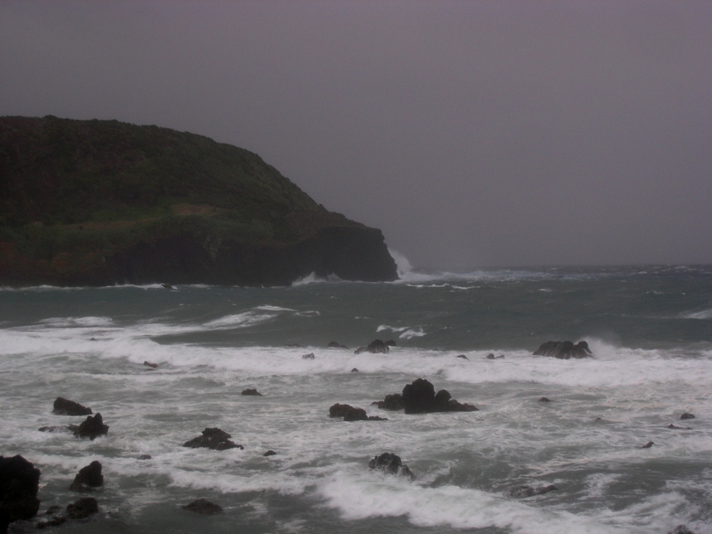 .... zwar starke Windböen, das Meer aufgewühlt, Nieselregen mit einigen Schauern, vielleicht kommt noch was während der Nacht....