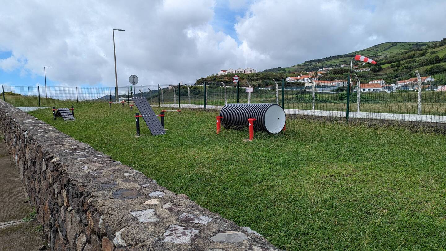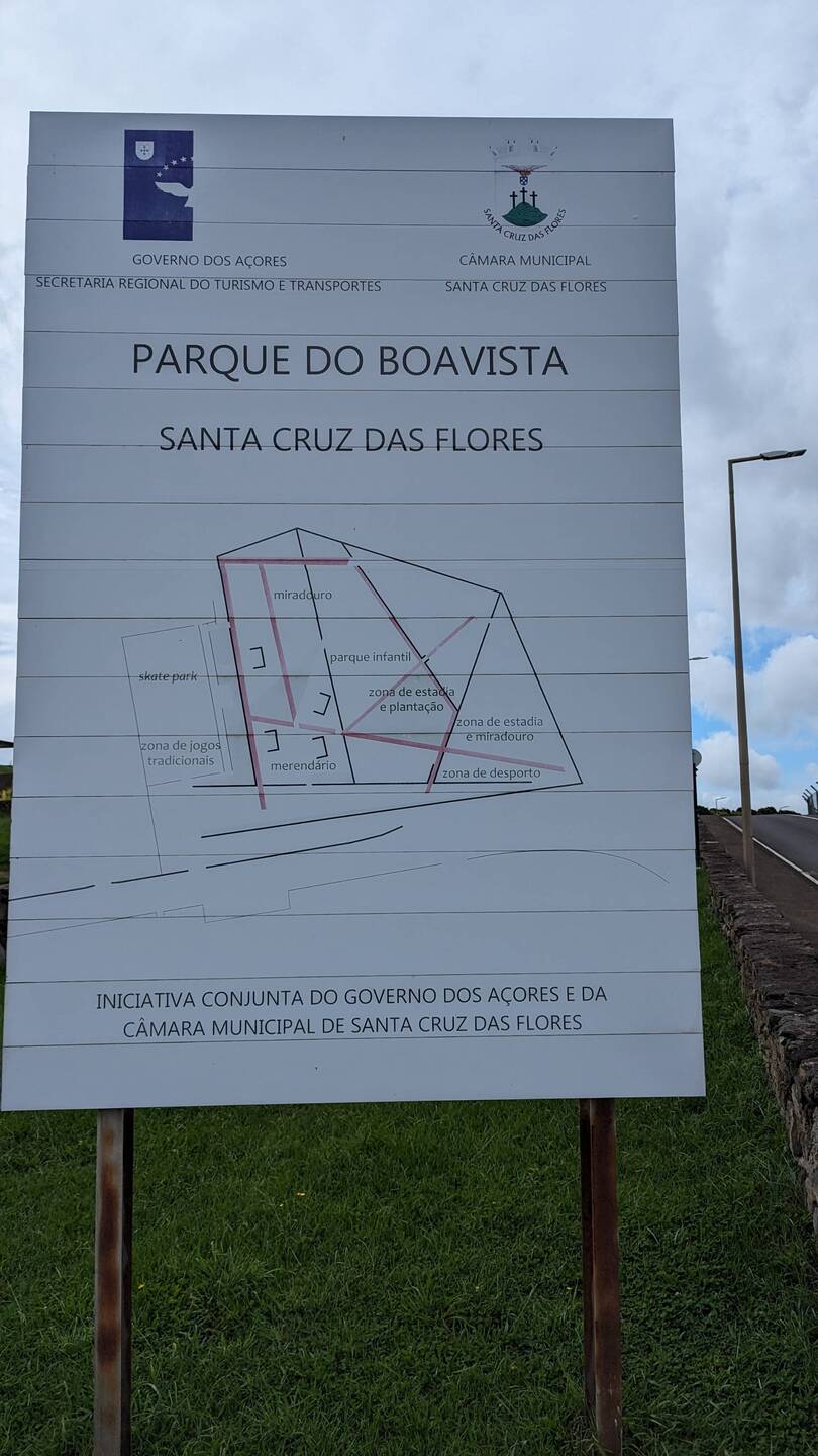Wir schauen uns den Stadtpark und gleich daneben den grossen Kinderspielplatz an und erreichen das Ende der Siedlung. Santa Cruz liegt auf einer kleinen Landzunge und hinten am Berg ist die Landebahn des Flughafens. Das heisst, der Ort ist genau so lang wie die Landebahn und es gibt eine Strasse am Anfang und eine am Ende zwischen Meer und Piste, um in den Ort zu kommen. Am einen Ende ist auch das Flughafengebäude und jetzt sind wir am anderen Ende und entdecken keine 100 Meter von den 2 anderen Parks entfernt einen weiteren. Dieser wurde von der EU mitfinanziert. Wohl um die Abwanderung, ein grosses Problem auf den kleinen Inseln hier, etwas zu stoppen. Gut gemeint, aber eindeutig überdimensioniert und wohl auch etwas an den Menschen hier vorbei geplant. Der neue Park hat zusätzlich zu dem, was die beiden anderen schon haben, noch 3-4 Holzbalken zum Balancieren. Liegestühle um die startenden und landenden Flugzeuge zu beobachten (1-2 x pro Tag), ein riesiger Skaterpark und ein Hundeübungsplatz. Ich weiss nicht genau, wie viele Schüler dieser überalterte Ort hat, aber bei 1750 Einwohnern können es nicht viele sein, die sich für einen Skaterpark interessieren. Auch habe ich auf der ganzen Insel noch keinen Hund gesehen, der nicht entweder angekettet, eingezäunt oder streunend war. Auch gibt es in der Natur einige schöne Parkanlagen, die von den Einheimischen am Wochenende gerne zum Grillen genutzt werden. Für uns ist es schwer vorstellbar, dass hier jemand auf diesen EU-Park gewartet hat. Vielleicht wäre ein Gewächshaus für die Bevölkerung zum Anbau von Salat & Co. eine bessere Investition gewesen?