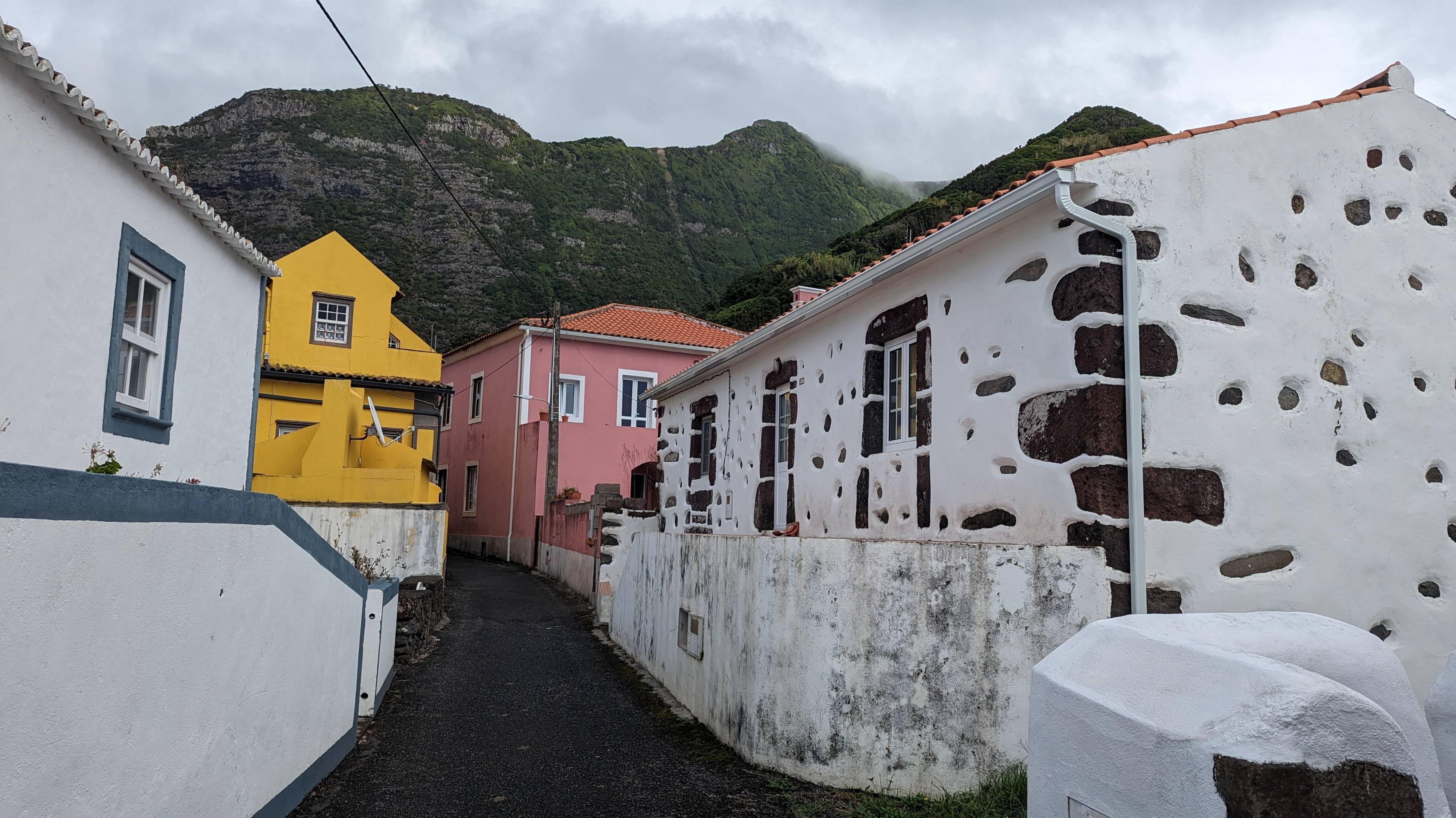 Mosteiro, viel weniger gepflegt wie Lajedo. Höchstens so breit sind die Nebenstrassen hier.
