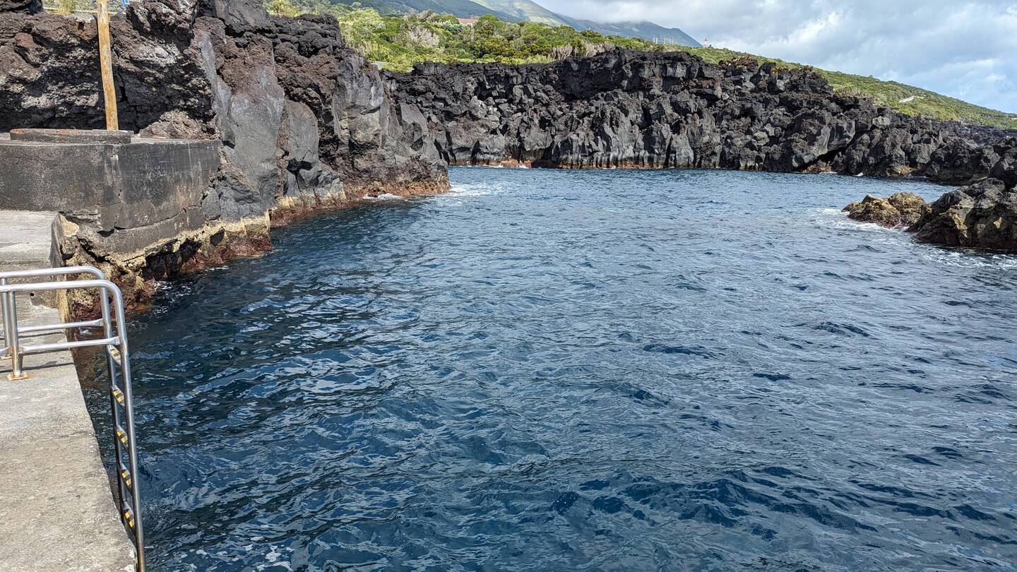 Wir sind gegen 16 Uhr zurück in der Unterkunft. Diese hat nämlich einen weiterer Vorteil der nahe Strand. Besser gesagt eine kleine Bucht mit schwarzem Sand. Zusätzlich hat es noch eine kleine Grotte die ein gezeiten Pool ist und ein kleiner Hafen der natürlich auch zum Schwimmen geeignet ist. Und das alles kaum 5 Minuten zu Fuss entfernt. Wenigstens auf dem Hinweg, zurück sind es dann wohl knapp 10