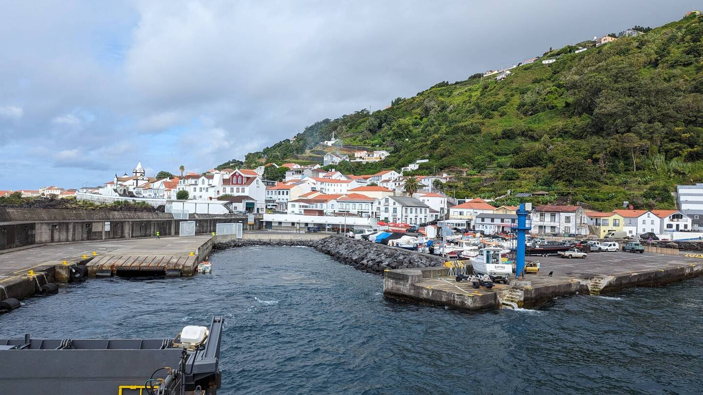 Allmählich verlieren wir auch Pico aus den Augen und während Terceira auftaucht, verschwindet São Jorge nun ganz. Am Hafen ist das Ausschiffen schnell erledigt und unser Auto wartet schon auf uns. Nach etwa 20 Minuten sind wir an unserer Unterkunft angekommen.