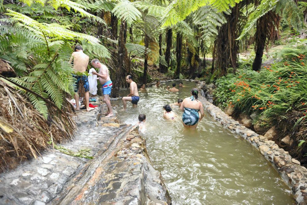 Lösen wir die Frage also auf: Es sind die Caldeiras Velhas (alte Kessel mit heißen Quellen) oberhalb von Ribeira Grande auf dem Wege zum Lagoa do Fogo. Sie wurden im Vorjahr ansprechend ausgebaut. Dort kann man auch im Winter im Freien baden.