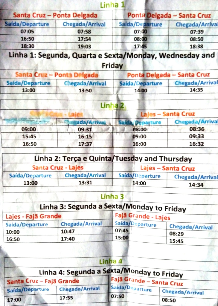 Macht die Touren mit Bus und Taxi. Auf Faial fährt vormittags 1x ein Bus in beide Richtungen ab Horta. Auf Flores gibt es ebenso touristentauglichen Busverkehr. Der Rückweg gegen Abend erfordert dann mangels Verbindung ein Taxi.