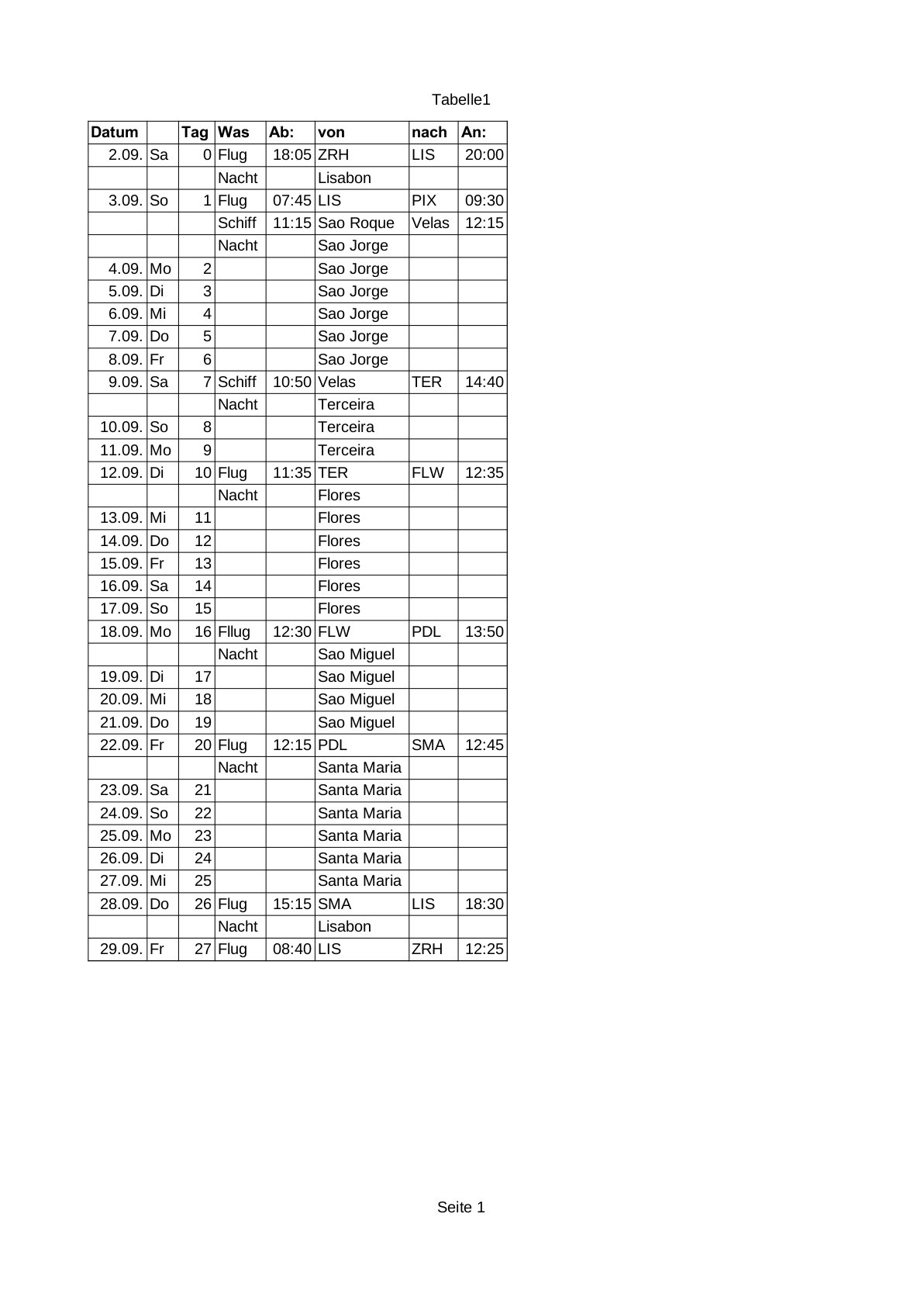 Da Santa Maria aus der Planung geflogen ist (5 Inseln sind wohl mehr als genug :wink: ) ist es nun doch die Variante mit "überall eher länger" geworden.